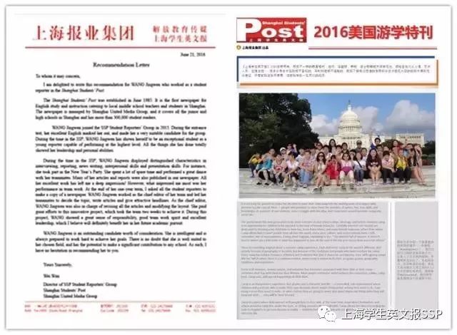 行程亮点4:《上海学生英文报》推荐信和特刊报道